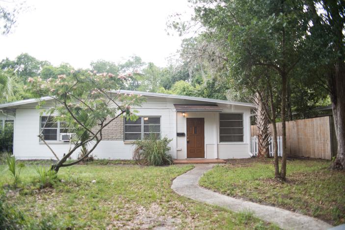 Description: Three bedroom two bath block home. Central heat & air, terrazzo flooring, washer/dryer hook-ups, fenced yard, one car garage, concrete shed, nice neighborhood.